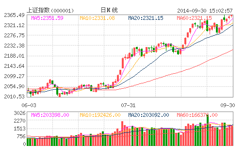 9月30日上證綜指以2361.32點(diǎn)小幅高開(kāi),全天圍繞前一交易日收盤點(diǎn)位窄幅整理,盤中創(chuàng)下2365.49點(diǎn)的本輪反彈新高,亦是18個(gè)月以來(lái)的新高。