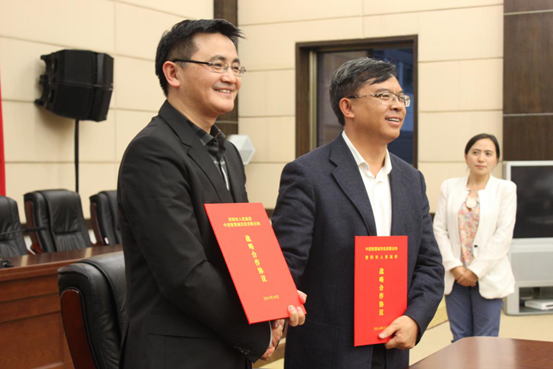 [聯(lián)合體總顧問梅紹華(左)與貴陽市常務(wù)副市長陳少榮(右),代表雙方簽署戰(zhàn)略合作協(xié)議]