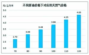 不同原油價格下對應(yīng)的天然氣價格