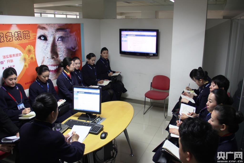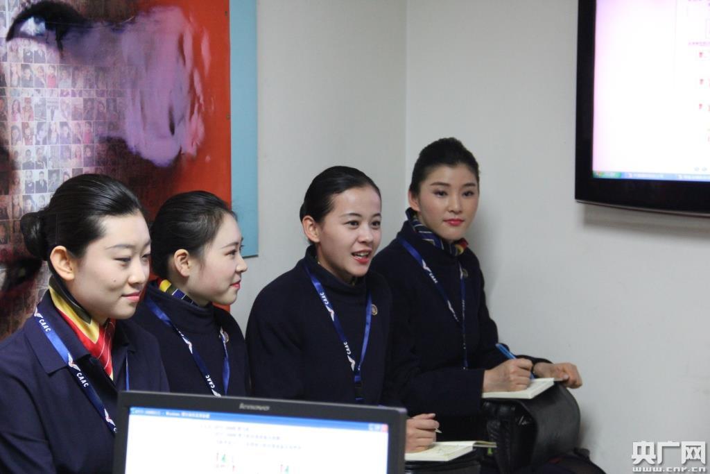 乘務組長凌寧(左前)主要負責國內航線,雖然不用忍受飛國際航線帶來的時差。但是因為國內航線一般都是提前兩天通知行程,所以當家人問她,你哪天休息啊,她都會回答不太清楚、到時候再說。她開玩笑的說:干我們這行的不能有計劃,有計劃就會有變化。