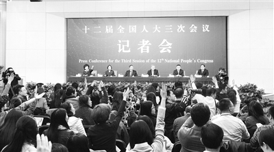 3月12日下午,十二屆全國人大三次會議新聞中心舉行記者會。圖為記者會現場。本報記者 李樹貴攝