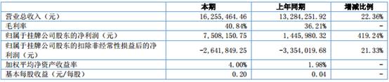 從上表可以看出云南文化的營業總收入比上年同期增加了22.36%,而在歸屬于掛牌公司股東的凈利潤一欄,比上年同期增加了419.24%,也就是增加了4倍多。在基本每股收益方面從上年同期的0.04元/股增長至0.20元/股,翻了5倍,可以看出相比于其在掛牌前是有跨越式的進步的。