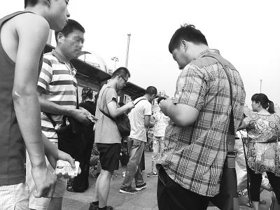 當(dāng)天下午天氣炎熱,每個售票窗口前都有十幾位乘客頂著烈日排隊(duì)。在隊(duì)尾的人群中,有三四個男女手里各拿著一摞地鐵票,向排隊(duì)的人兜售。
