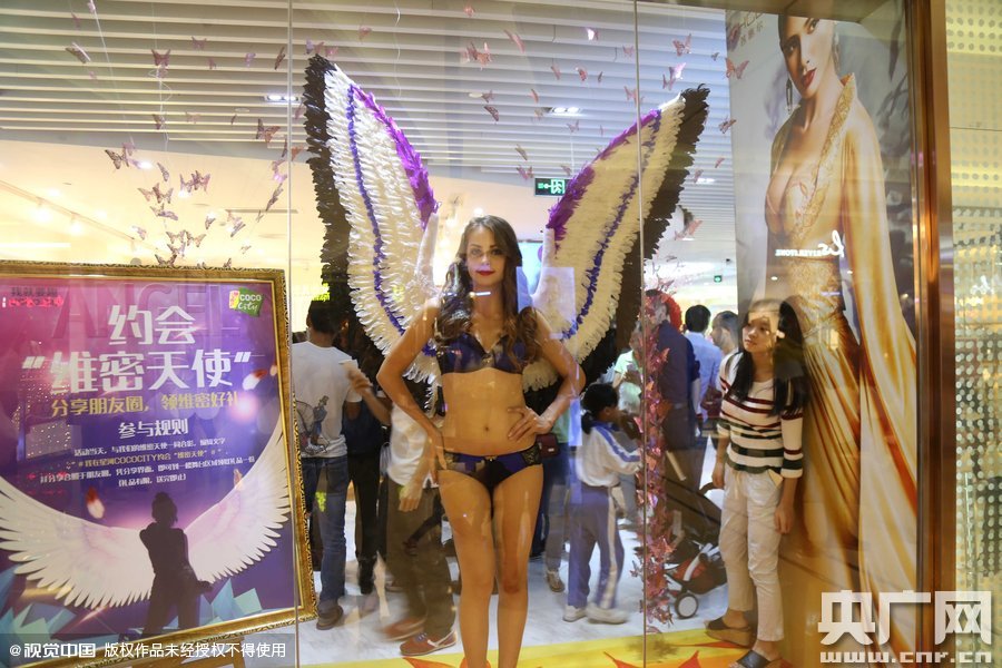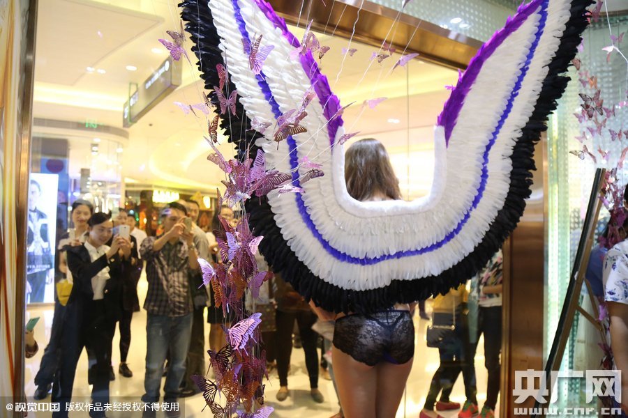 2015年11月11日訊,廣東省深圳市,11月11日晚,一場(chǎng)內(nèi)衣企業(yè)做的山寨"維秘"秀現(xiàn)身深圳,吸引大批男女老少圍觀,清一色的洋模身著內(nèi)衣搭配不同款式的翅膀在T臺(tái)走秀,相當(dāng)吸睛,而后更是引來不少人求合影!