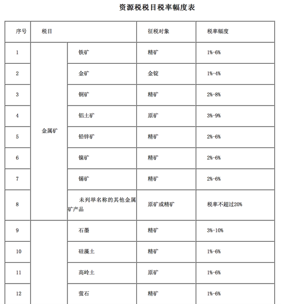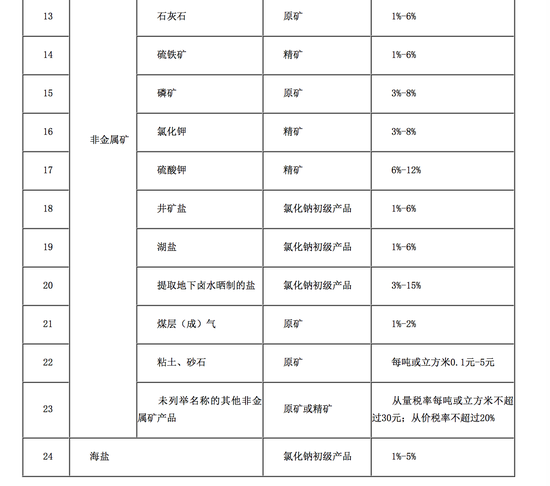 2.已實(shí)施從價(jià)計(jì)征的原油、天然氣、煤炭、稀土、鎢、鉬等6個(gè)資源品目資源稅政策暫不調(diào)整,仍按原辦法執(zhí)行。