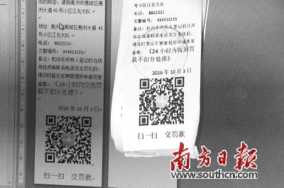 1日,部分市民在微信朋友圈及當地論壇發布消息,稱自己在車上發現一張奇怪的“違章公停車單”,并附上相關圖片。根據圖片顯示,這張“違章公停車單”上面印著“該車輛于2016年10月1日在廣東違反了《道路交通安全法》第56條規定,請持本通知書到廣東省惠州市惠城區文明一路25號交通大廈”,除了留有編號、地址、聯系方式外,還蓋有惠州市公安局交通警察支隊的印章以及二維碼付款方式。但讓人感到疑惑的是,車輛交通違法的具體時間、地點、違章行為、罰款金額、車牌號等基本信息都沒有。