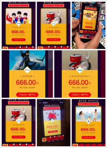 支付寶的五福紅包從1月18日開始推出后,隨即成為一場全民狂歡,五福相關話題幾乎每天都出現在微博熱搜。有網友笑稱,現在簡直是看到“福”字就條件反射掏出手機,還有人用糖果、口紅甚至雞骨頭拼出“福”字來掃,可謂腦洞大開。還有網友說,幫父母集齊了五福,順便教會了爸媽用智能手機。