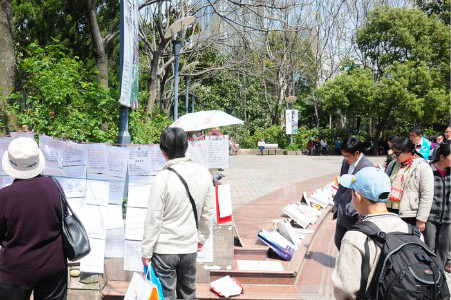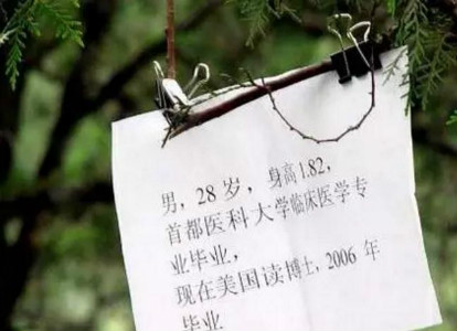 所謂"白發(fā)相親角",顧名思義,就是以50后、60后的父母為主體的"交易市場",而其兒女則是被明碼標價的"商品"。除了北京的"白發(fā)相親角"之外,全國類似的相親角還有很多,大部分都是在公園里。比如上海的人民公園、廈門的中山公園、廣州的天河公園、西安的革命公園、濟南的千佛山公園以及哈爾濱兆麟公園里都有非常有名的"相親角"。