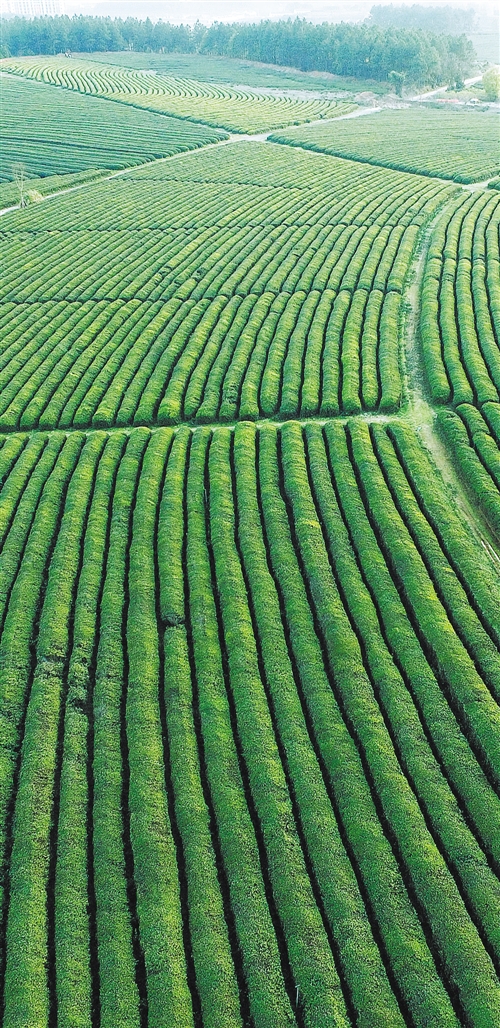 圖② 江西省南昌縣鳳凰溝景區(qū)的“千畝茶!。坐擁整個(gè)鄱陽(yáng)湖流域、正處工業(yè)化發(fā)展中期的江西,正為長(zhǎng)江經(jīng)濟(jì)帶生態(tài)文明建設(shè)尋找答案。 新華社記者 萬(wàn) 象攝