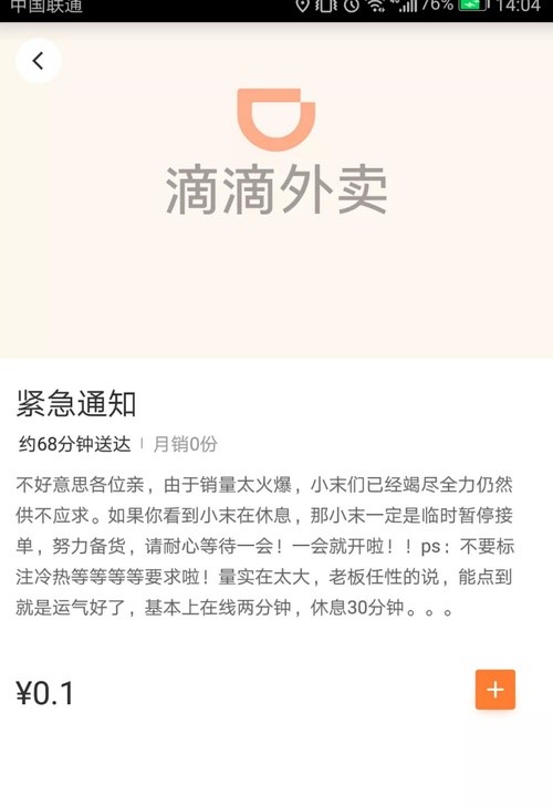雖然享受了優惠的價格,但由于外賣訂單激增,用戶的送餐時間得不到保障。無錫市民商女士表示,因為身邊朋友推薦才開始用滴滴外賣。本來想著有優惠,誰知道下單后足足等了兩個小時,送到時飯都涼了。