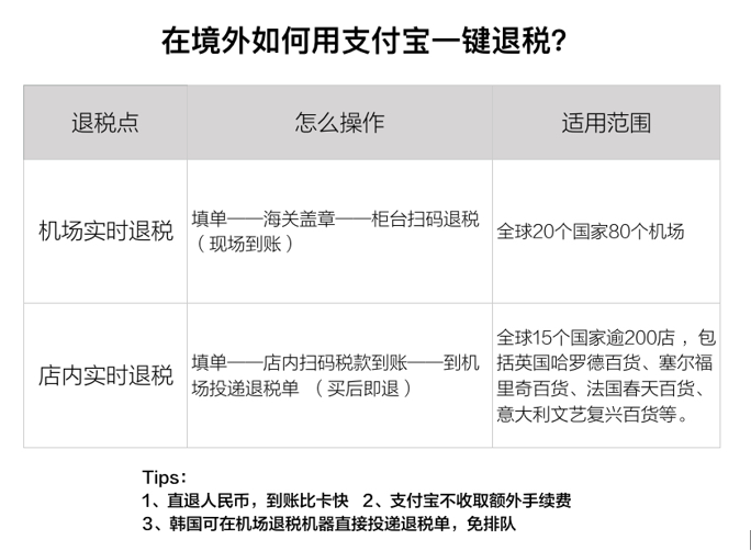 除了匯率,在今年暑假,支持支付寶退稅的機場數量增加到了80家,創造了歷史新高,換言之,在可退稅國家,已經有超過80%面向中國游客推出了手機退稅服務。