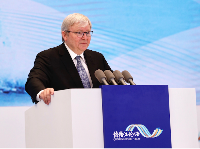 澳大利亞前總統、亞洲協會政策研究院主席陸克文在論壇上發言