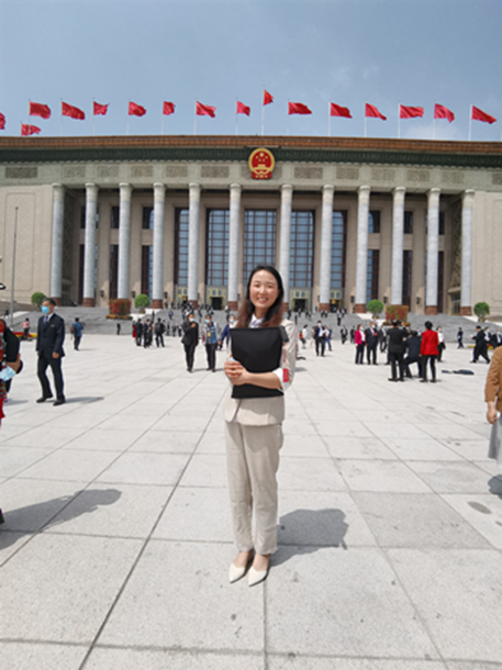 今年兩會,梁倩娟在人民大會堂前留影。(受訪者供圖)
