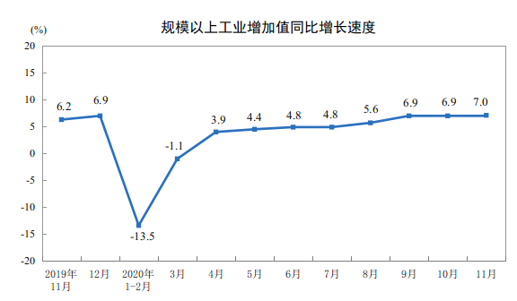 央廣網(wǎng)北京12月15日消息 12月15日,國家統(tǒng)計(jì)局發(fā)布數(shù)據(jù)顯示,11月份,規(guī)模以上工業(yè)增加值同比實(shí)際增長7.0%(以下增加值增速均為扣除價格因素的實(shí)際增長率),增速較10月份加快0.1個百分點(diǎn)。從環(huán)比看,11月份,規(guī)模以上工業(yè)增加值比上月增長1.03%。1—11月份,規(guī)模以上工業(yè)增加值同比增長2.3%。