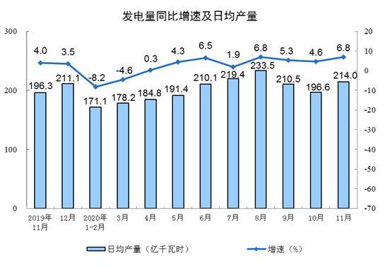 分產(chǎn)品看,11月份,612種產(chǎn)品中有439種產(chǎn)品同比增長。鋼材11734萬噸,同比增長10.8%;水泥24330萬噸,增長7.7%;十種有色金屬549萬噸,增長6.1%;乙烯198萬噸,增長11.6%;汽車278.3萬輛,增長8.1%,其中,新能源汽車20.7萬輛,增長99.0%;發(fā)電量6419億千瓦時,增長6.8%;原油加工量5835萬噸,增長3.2%。