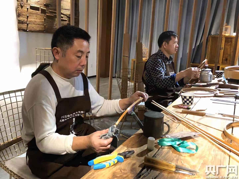 古城鳥籠制作技藝工匠正在制作鳥籠(中央廣播電視總臺央廣記者 張慧娟 攝)