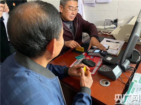 秀海村村民正在惠農(nóng)通取款點(diǎn)辦理業(yè)務(wù)(央廣記者張茜/攝)