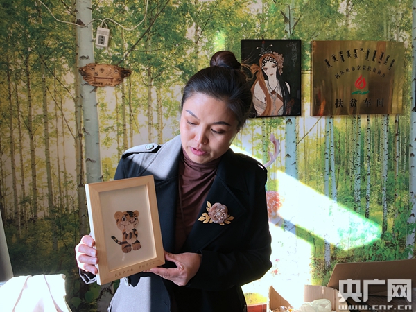 阿爾山市白狼鎮(zhèn)將樹皮畫作為當?shù)靥厣糜渭o念品。樹皮畫非遺傳承人李艷紅開設了樹皮畫非遺扶貧就業(yè)工坊,面向建檔立卡貧困戶教授樹皮畫制作技藝。貧困戶閑暇時間參與樹皮畫手工藝品的制作,手藝比較成熟的,每月可獲得1000多元收入。