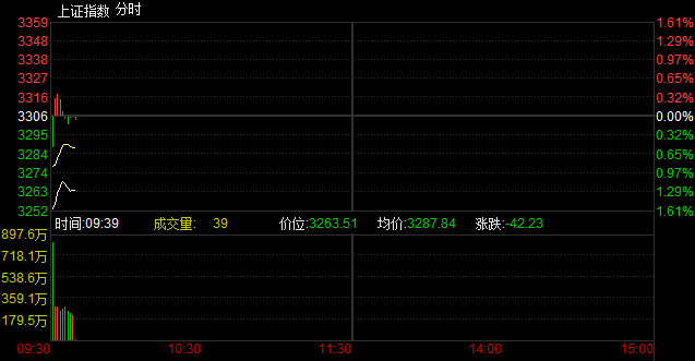 開盤:滬指跌1.33%失守3300點 券商領跌