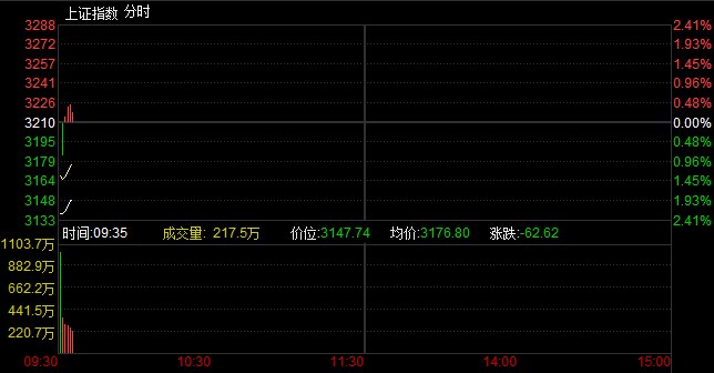開盤:兩市跳空低開 滬指跌2.08%報3144點