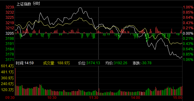 收盤:滬指跌0.96%失守3200點 權重股拖累指數