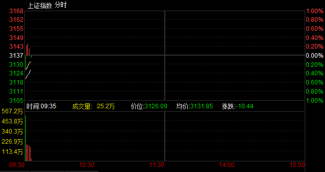 開盤:兩市小幅低開滬指跌0.52%報3120點