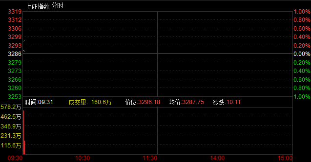 央廣網財經北京3月11日消息 據經濟之聲《交易實況》報道,兩市開盤漲跌不一,滬指報3289.59點,上漲3.53點,漲幅0.11%,成交19.62億元;深成指報11554.6點,下跌1.99點,跌幅0.02%,成交23.89億元;創業板指報2050.76點,上漲5.44點,漲幅0.27%,成交7.881億元。