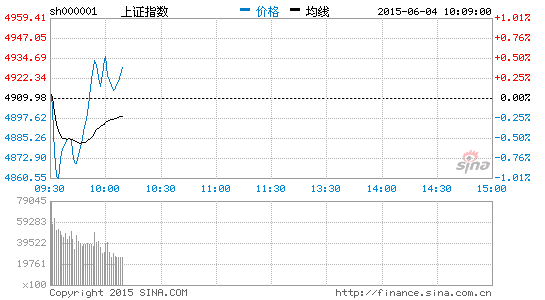 央廣網北京6月4日消息 據經濟之聲《交易實況》報道,周四早盤,兩市雙雙高開,滬指報4912.94點,漲2.97點,漲幅0.06%;深成指報17579.36點,漲40.85點,漲幅0.23%;創業板報3991.80點,漲9.55點,漲幅0.24%。