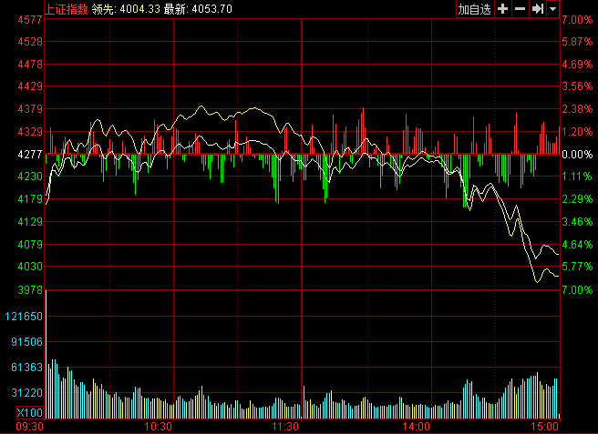 收評:滬指重挫200點跌5.23% 逼近4000點