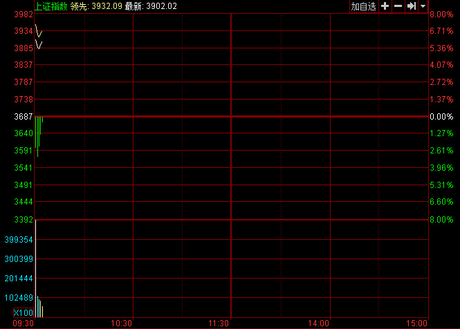兩市大幅高開滬指漲7.82% 近千股漲停