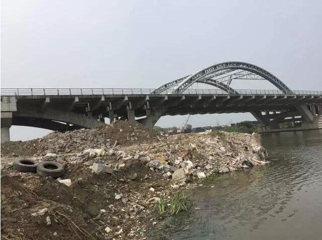 江蘇海門新江海河內偷倒大量建筑垃圾的現場