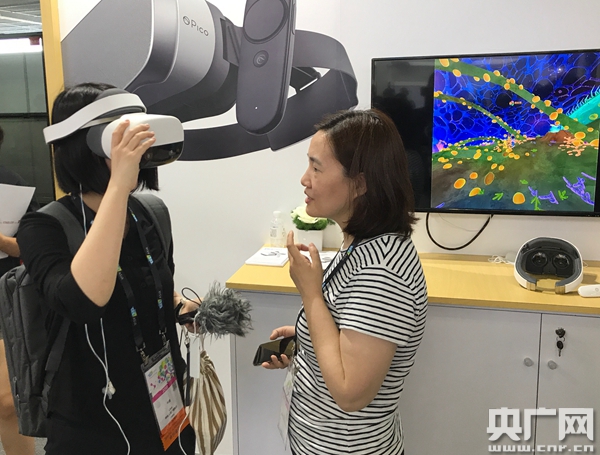 另外,在教育領(lǐng)域,VR設(shè)備也開始投入應(yīng)用。在北京小鳥看看科技有限公司的展區(qū),記者體驗了一款頭戴式VR一體機,這款設(shè)備可以結(jié)合生物學(xué)教學(xué)方案,呈現(xiàn)細菌的形態(tài)并講解相關(guān)知識。小鳥看看科技有限公司副總裁祖昆侖介紹,VR設(shè)備提升了教學(xué)手段的豐富性和趣味性。傳統(tǒng)的教學(xué)可能只能展示圖片,但在VR設(shè)備里,學(xué)生可以非常直觀地看到細菌的形狀,在看到細菌同時,它還會告訴學(xué)生該細菌的作用。祖昆侖說,除了生物方面的VR產(chǎn)品,他們還做過帶有化學(xué)、地理、英語等學(xué)科內(nèi)容的VR產(chǎn)品。