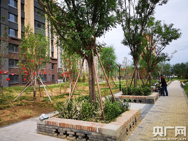 比如回遷房小區里到處都可以看到村里原生的老樹,原來的拆遷村里有價值的白皮松、國槐、銀杏等老樹都移植回了小區,原來村莊的一些老磚、舊瓦被移到新小區砌成了矮墻。