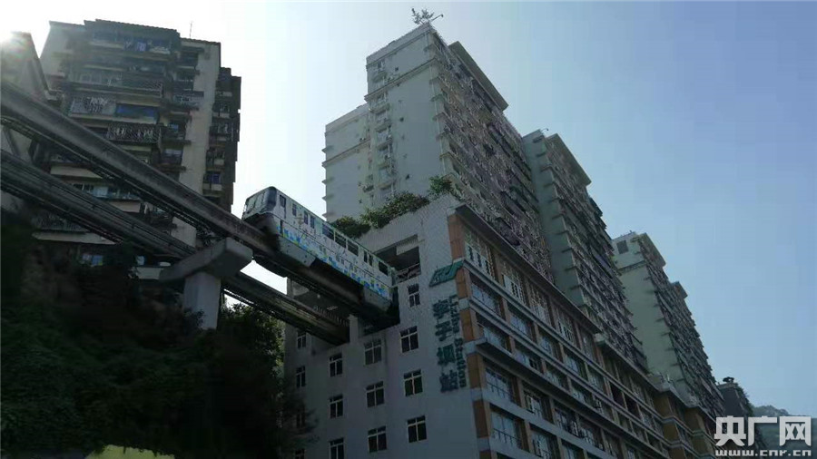 重慶市軌道(集團)有限公司運營二公司客服管理部鄒燕茹介紹,李子壩站站臺位于商住樓的6-8層,是國內第一座與商住樓共建共存的跨座式單軌高架車站。