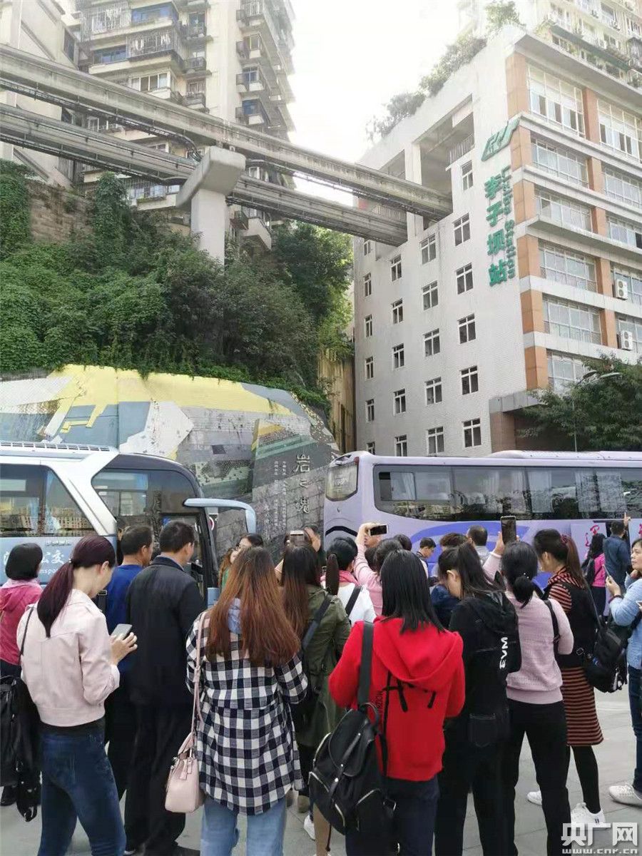 李子壩站每天吸引上萬名游客打卡。(央廣記者佟亞濤攝)