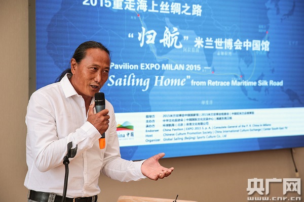 央廣網米蘭8月19日消息(記者盧靖)“2015重走海上絲綢之路”歸航中國館活動昨日在米蘭世博會中國館舉行。著名航海家翟墨率領船隊,于4月20日從中國福建平潭啟航,穿越南海、印度洋、阿拉伯海、亞丁灣、蘇伊士運河、地中海等海域,途經新加坡、埃及、馬耳他、希臘等國家,成功抵達終點站意大利。