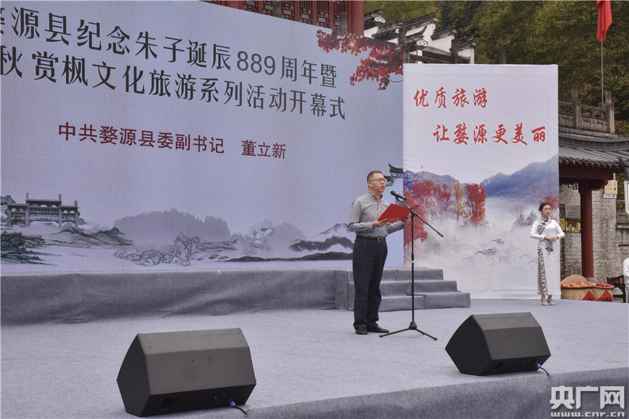 央廣網(wǎng)婺源10月25日消息 10月25日,紀念朱子誕辰889周年暨曬秋賞楓文化旅游系列活動開幕式在婺源文公山景區(qū)舉行。