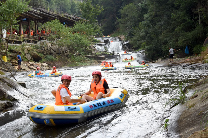 近日,江西多地持續(xù)高溫,位于婺源縣的五龍源極限漂流景區(qū)迎來旅游高峰,眾多游客前來體驗親水漂流項目,樂享夏日清涼。