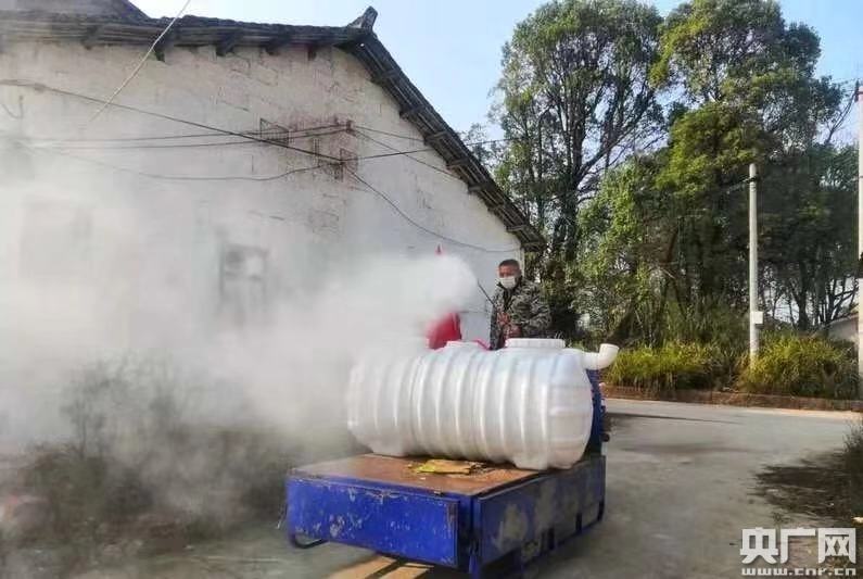 考慮到疫情防控緊迫,消毒區(qū)域太廣,該村黨支部黨員進行了頭腦風(fēng)暴,借鑒先進地區(qū)“無人機”式噴灑方式,用廁所革命“庫存桶”和洗車噴頭進行改裝,創(chuàng)新開展符合村情的農(nóng)村式“半機械化”作業(yè),黨員兩兩搭檔合作,開著自家電動三輪車,立著黨旗,載著消毒藥水,沿著村組道路進行全路段無縫噴灑。相比徒步噴灑,提高了工效四倍。在機械化和人力徒步入戶合作下,實現(xiàn)了責(zé)任區(qū)內(nèi)所有道路、活動中心、民房、深埋桶等等區(qū)域全覆蓋式消毒。