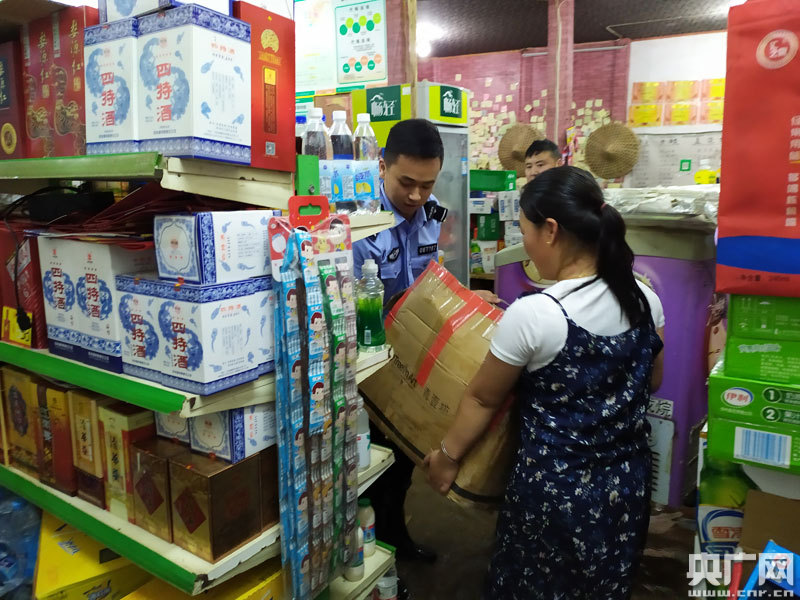 當沱川派出所全部警力趕到理坑村時,村莊路面水位已漫過膝蓋,并且水位依舊在不斷上漲,沿河居民家中已被水倒灌。民警立即協助居民搶救家中貴重物資,經過一個多小時的搶救,成功幫助沿河居民轉移貴重物資,將居民的損失降至最低。