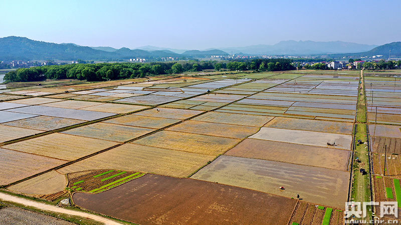 4月9日,江西省吉安市吉水縣丁江鎮塘邊村高標準農田建設區一片忙碌,村民正在春播春種