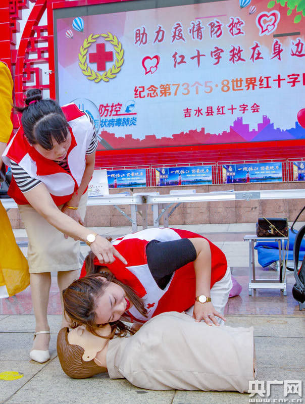 央廣網(wǎng)吉水5月8日消息(記者王一凡 通訊員涂藝椹 胡曦)為紀(jì)念第73個“世界紅十字日”和我國第12個“全國防災(zāi)減災(zāi)日”,弘揚(yáng)“人道、博愛、奉獻(xiàn)”的紅十字精神,5月8日上午,吉水縣紅十字會在縣文化公園組織開展了“助力疫情防控,紅十字‘救’在身邊”應(yīng)急救護(hù)知識培訓(xùn)活動,為減少人員聚集,此次培訓(xùn)采取了現(xiàn)場教學(xué)和視頻教學(xué)兩種形式,縣紅十字會志愿者20余人參與了現(xiàn)場培訓(xùn)。