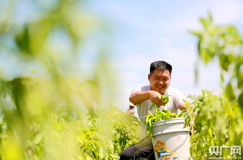 2020年6月16日,江西省吉安市吉水縣雙村鎮豐凱農業辣椒產業基地一片歡聲笑語,村民正在采摘有機辣椒。