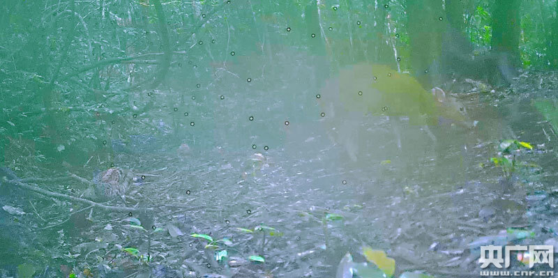 紅外相機首次拍到白頸長尾雉和黃麂一起覓食(央廣網發 九嶺山國家級自然保護區 提供)