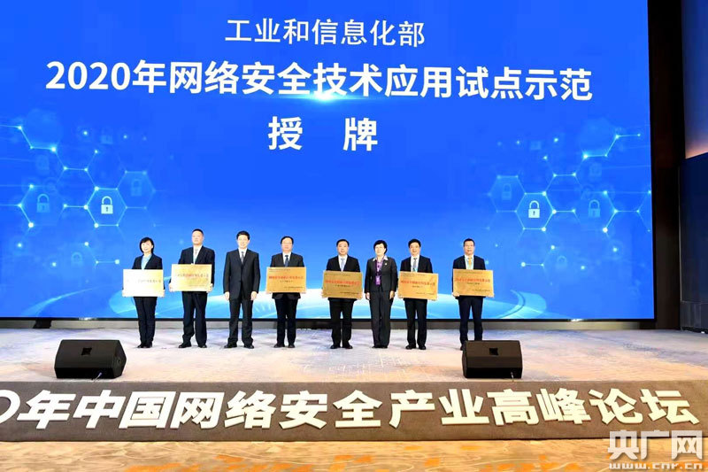 2020中國網絡安全產業高峰論壇上對網絡安全技術 應用試點示范進行授牌