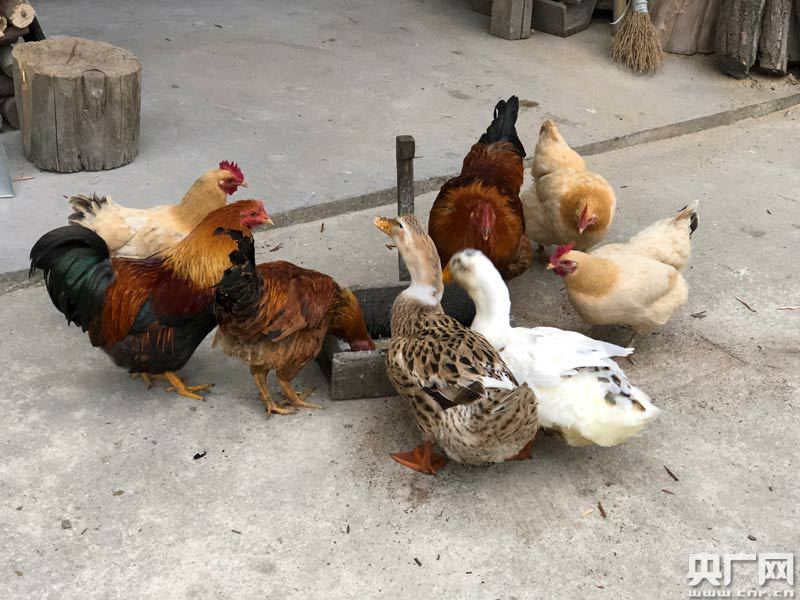 駱德濱家門前的雞鴨(央廣網發 李竟成攝)