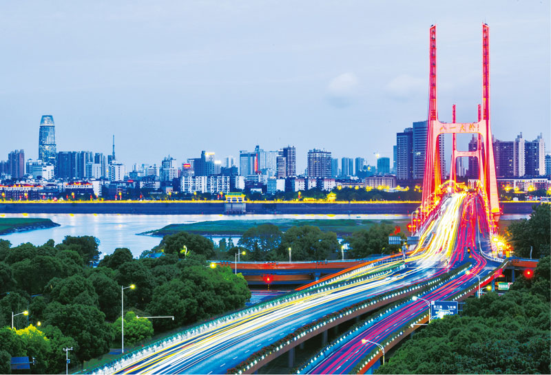 近年來,江西沿著習近平總書記指引的方向和道路砥礪前行,明確把推進江西高質量跨越式發展作為首要戰略,發展的成色更純、底色更亮、根基更牢。圖為2020年5月22日,江西省南昌市的地標建筑——八一大橋。 人民圖片 徐國亮/攝