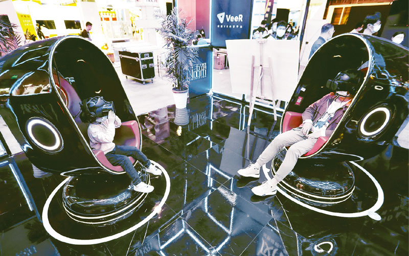 江西堅持以供給側結構性改革為主線,扭住創新這個“牛鼻子”,做強產業這個“主支撐”,在擴量提質中加快新舊動能轉換。作為2020世界VR產業大會的一項重要內容——2020VR/AR產品和應用展覽會在南昌舉行。圖為2020年10月20日,江西南昌綠地國際博覽中心,市民在體驗VR觀影。 人民圖片 徐錚/攝