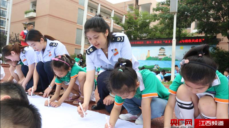 晨會后,南昌市國稅局第一直屬稅務分局與學校聯合開展了“百米畫布,千人涂鴉”,稅收主題涂鴉活動,在長長的畫布上,近千名小朋友展開了想象的翅膀,繪下了自己對稅收的理解和想象,熱鬧輕松 的氛圍中,稅收知識離學生們的距離仿佛又近了許多。