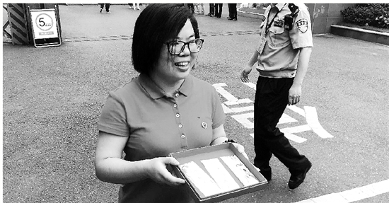 還有的家長透著從容。一位媽媽穿著光鮮,一早就提著親手做的餃子、餛飩等在校門口。待她住校的兒子起床,從她手里拿走愛心便當以后,媽媽就開始在校門口自拍了,并大氣接受各路媒體采訪,侃侃而談。然后大家還發現她腳下還有一大袋食物。“這個是給我和我老公準備的,我們一邊等一邊吃!”